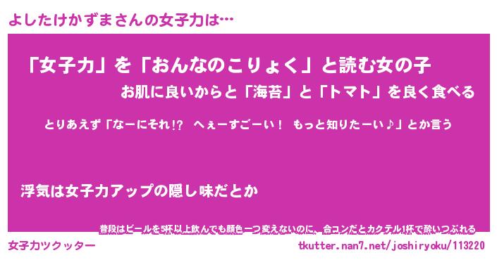 | 恥ずかしいあだ名 | 『プリティーよしたけかずま』『よしちん』 |