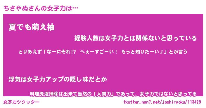 | 意味不明あだ名 | 『ペロリンちさやぬ』『永久保存ちさやぬ』 |