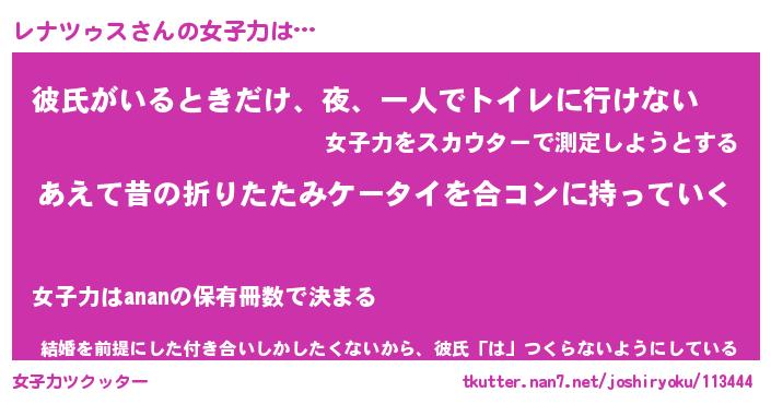 | 恥ずかしいあだ名 | 『プリティーレナツゥス』『レナっちょ』 |