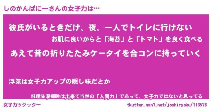 | 女子向けラノベタイトル風あだ名 | 『(仮)しのかんぱにーのやんごとなき事情』 |