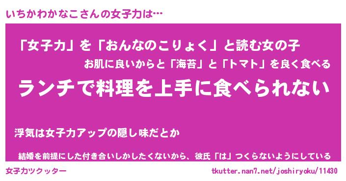 | 恥ずかしいあだ名 | 『プリティーいちかわかなこ』『いちちん』 |