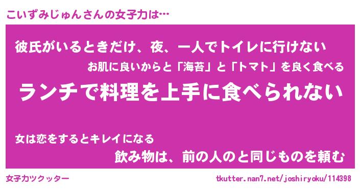 | 恥ずかしいあだ名 | 『プリティーこいずみじゅん』『こいちん』 |
