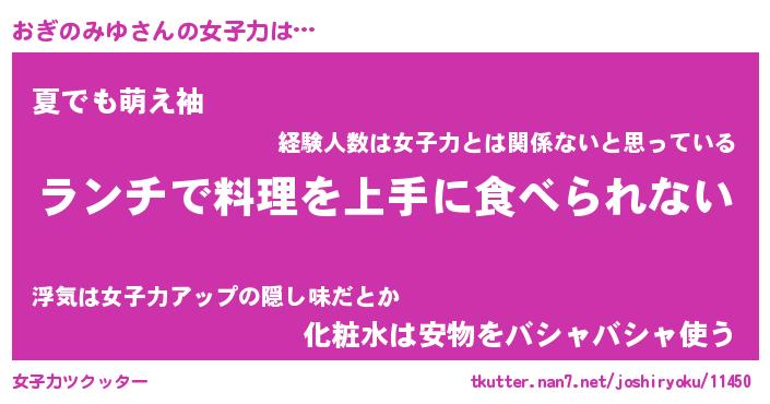 | ファンタジー風あだ名 | 『オギフェル』『エターナルオギノミユー』 |