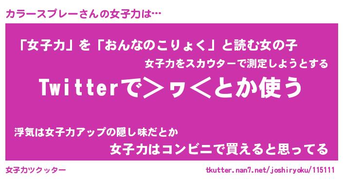 | 男性向けラノベタイトル風あだ名 | 『カラースプレーの憂鬱』 |