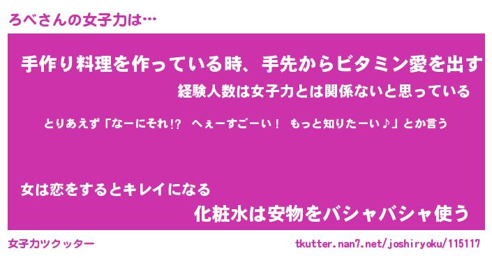 | ヘコむあだ名 | 『ろべにゅー』『つくし』 |