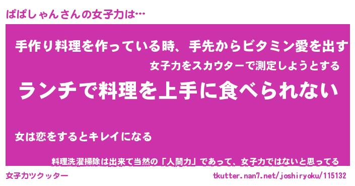 | 料理風あだ名 | 『ネギたっぷりぱぱしゃんの南蛮漬け』 |