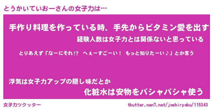 | ヘコむあだ名 | 『とうっふぃ~』『牛乳』『とうお』 |