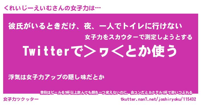 | 男性向けラノベタイトル風あだ名 | 『くれいじーえいむの憂鬱』 |