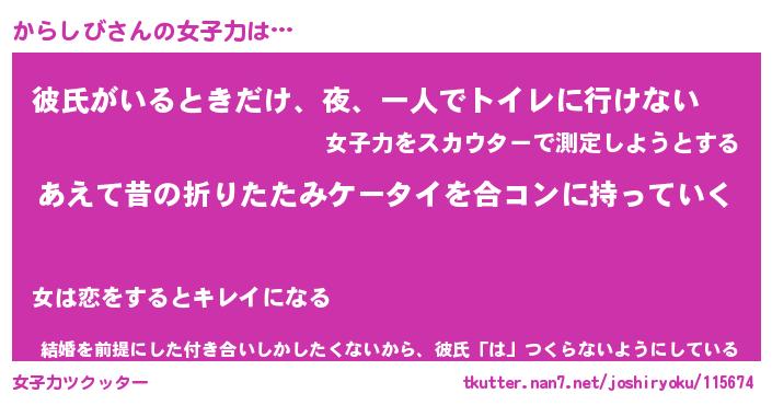 | 胡散臭い通販商品みたいなあだ名 | 『必ず成功するブレスレット…その名も「からしび」』 |