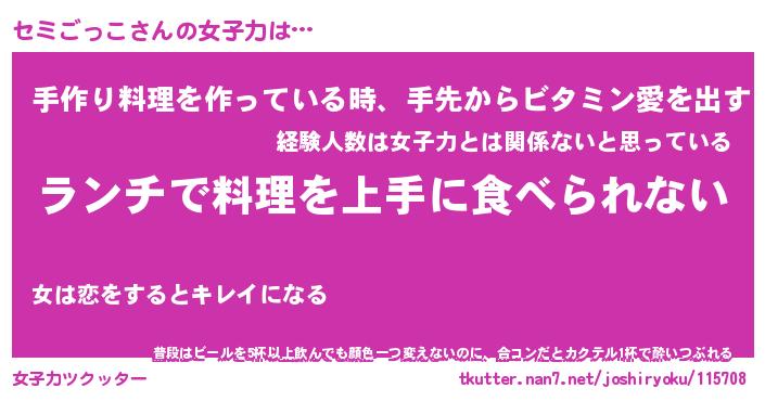 | ヘコむあだ名 | 『セミもー』『つくし』『セミお』 |