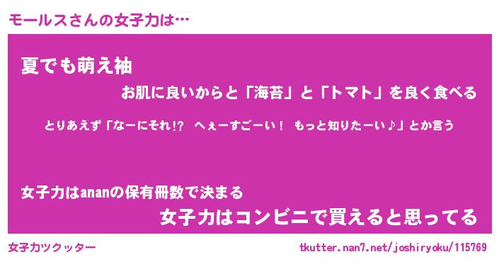 | ヘコむあだ名 | 『モーっふぃ~』『なまこ酢』 |