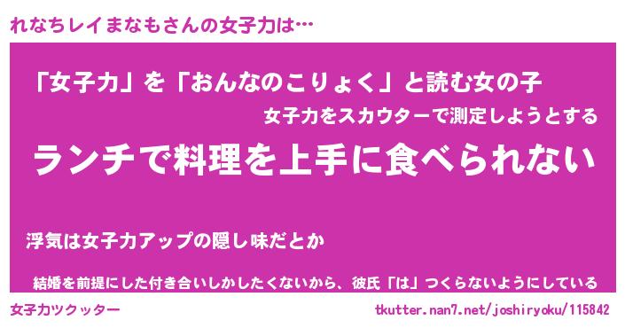 | ヘコむあだ名 | 『れなにゅー』『レバニラ』 |