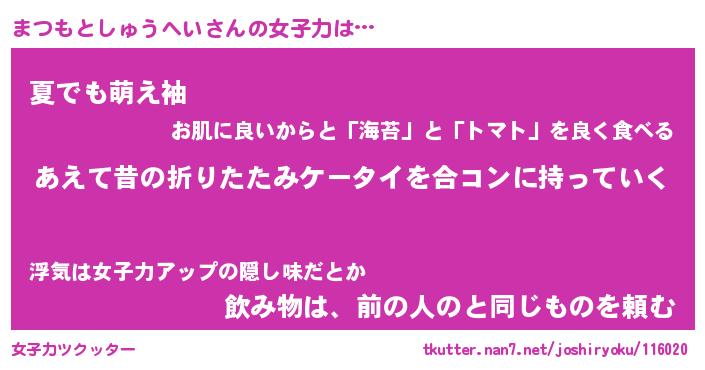 | 胡散臭い通販商品みたいなあだ名 | 『必ず成功するブレスレット…その名も「まつもとしゅうへい」』 |