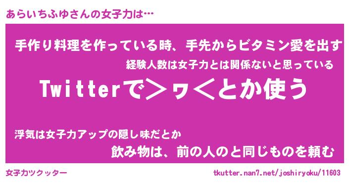 | 恥ずかしいあだ名 | 『プリティーあらいちふゆ』『あらっちょ』 |