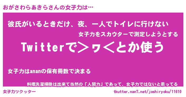 | 女子向けラノベタイトル風あだ名 | 『(仮)おがさわらあきらのやんごとなき事情』 |