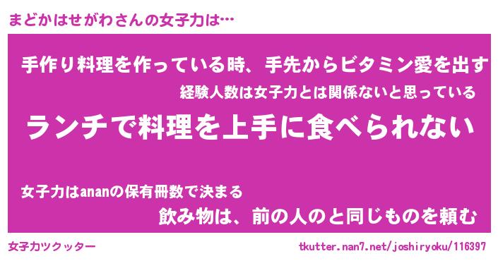 | ヘコむあだ名 | 『まどもー』『つくし』『まどを』 |