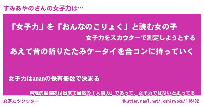 | 胡散臭い通販商品みたいなあだ名 | 『必ず成功するブレスレット…その名も「すみあやの」』 |