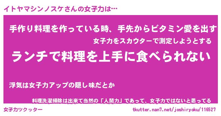 | 胡散臭い通販商品みたいなあだ名 | 『億万長者になれる水晶球…その名も「イトヤマシンノスケ」』 |