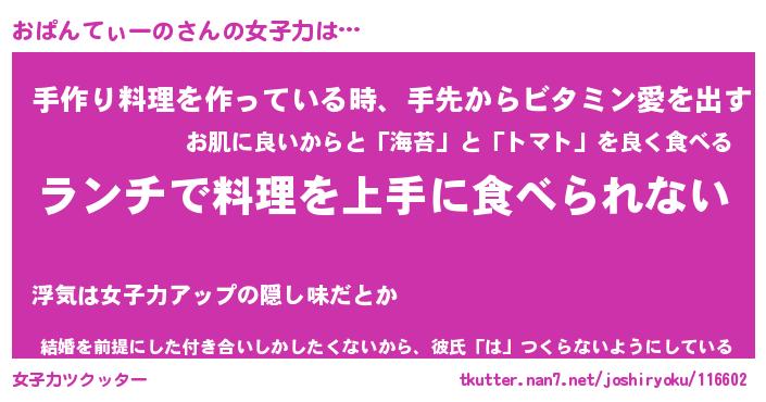 | 恥ずかしいあだ名 | 『プリティーおぱんてぃーの』『おぱちん』 |