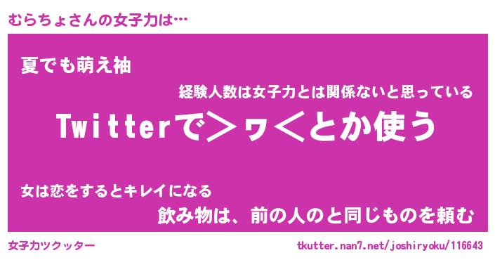 | ヘコむあだ名 | 『むらふぇ~』『なまこ酢』 |