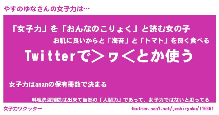 | 恥ずかしいあだ名 | 『プリティーやすのゆな』『やすっちょ』 |