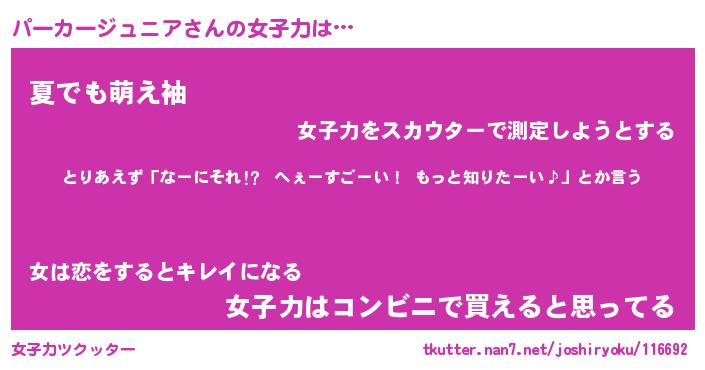 | 女子向けラノベタイトル風あだ名 | 『パーカージュニア姫と円卓の騎士』 |