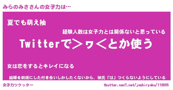 | ヘコむあだ名 | 『みらっふぃ~』『なまこ酢』 |