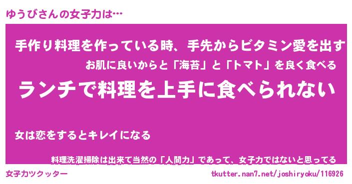 | ファンタジー風あだ名 | 『ユウフェル』『エターナルユウビー』 |