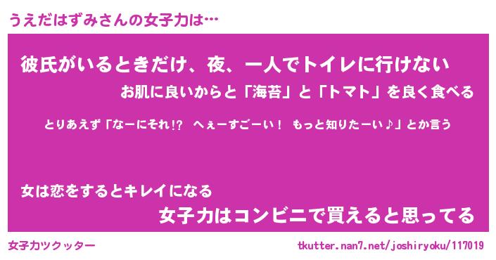 | ヘコむあだ名 | 『うえもー』『牛乳』『うえっぺ』 |
