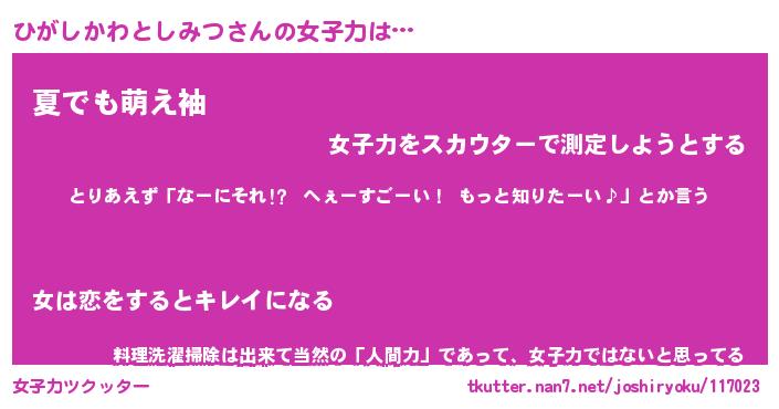 | 胡散臭い通販商品みたいなあだ名 | 『モテモテ間違いなし水晶球…その名も「ひがしかわとしみつ」』 |