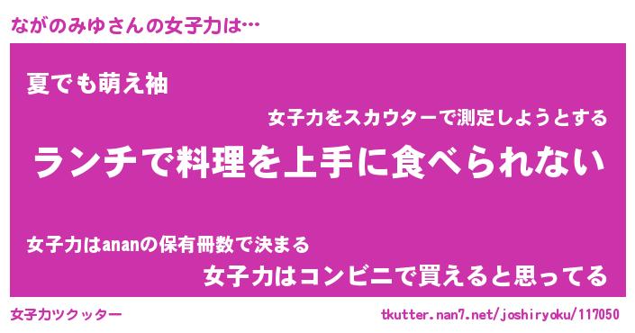 | 肩書あだ名 | 『ながのみゆ店長』『ながのみゆ大統領』 |