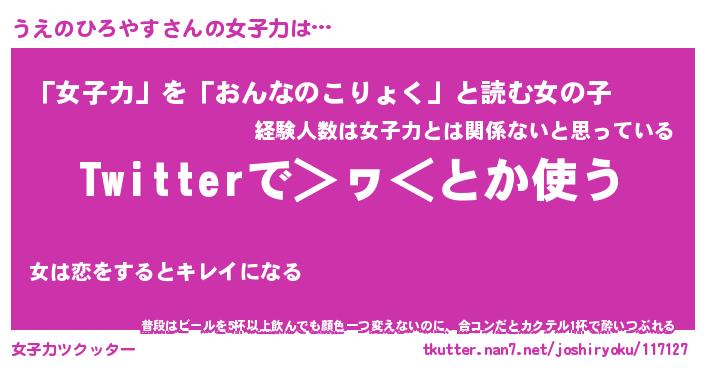 | ヘコむあだ名 | 『うえふぇ~』『酢こんぶ』 |