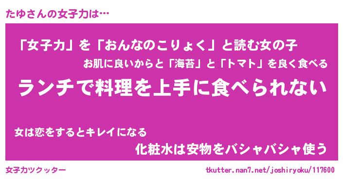 | ヘコむあだ名 | 『たゆもー』『酢こんぶ』『たゆお』 |