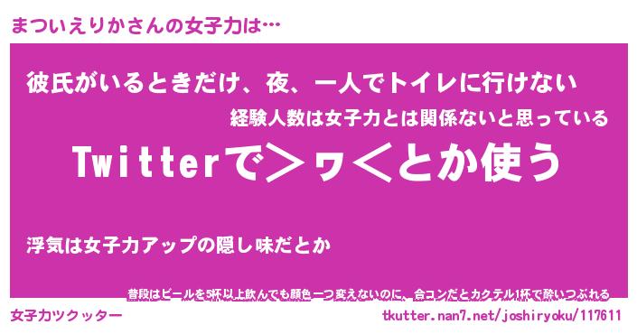 | 恥ずかしいあだ名 | 『プリティーまついえりか』『まつっちょ』 |