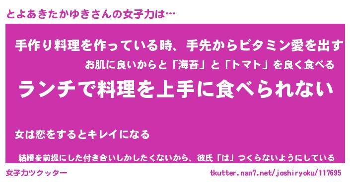 | ヘコむあだ名 | 『とよにゅー』『つくし』『とよっ子』 |