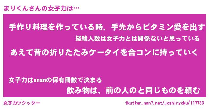 | 恥ずかしいあだ名 | 『プリティーまりくん』『まりっちょ』 |
