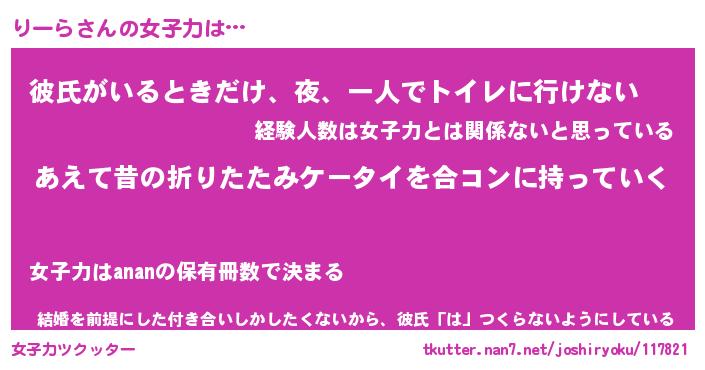 | 恥ずかしいあだ名 | 『プリティーりーら』『りーっちょ』 |
