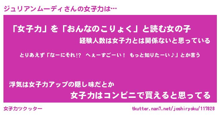 | 女子向けラノベタイトル風あだ名 | 『ジュリアンムーディ姫と円卓の騎士』 |