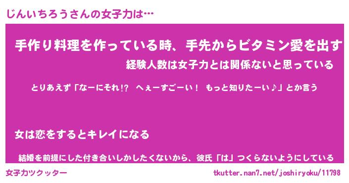 | ヘコむあだ名 | 『じんっふぃ~』『つくし』 |