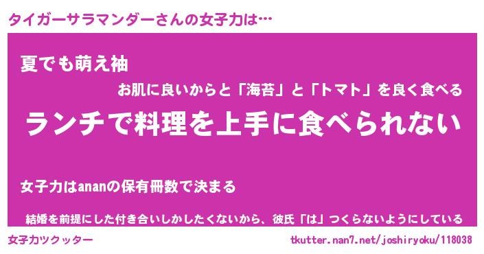 | ツイッター | タイガーサラマンダーさんのツイッターID『fukuyoka_kun』 |