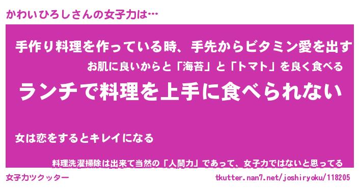 | ヘコむあだ名 | 『かわにゅー』『つくし』『かわを』 |
