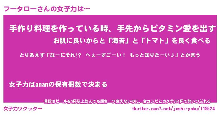| ファンタジー風あだ名 | 『フーフェル』『エターナルフータローー』 |