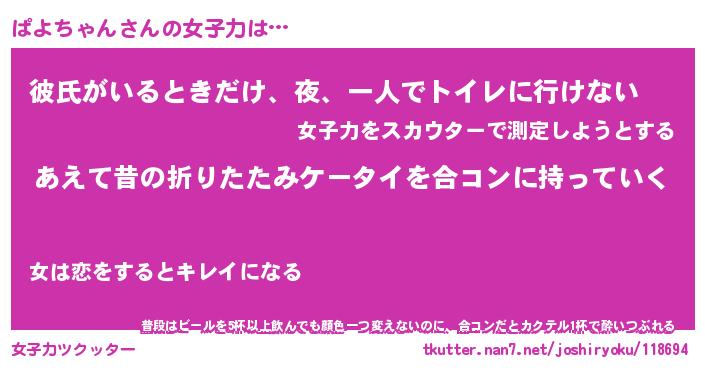 | 女子向けラノベタイトル風あだ名 | 『(仮)ぱよちゃんのやんごとなき事情』 |