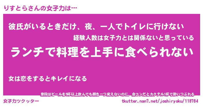 | 意味不明あだ名 | 『ペロリンりすとら』『永久保存りすとら』 |