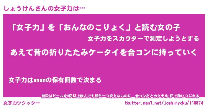 | ヘコむあだ名 | 『しょにゅー』『つくし』『しょっぺ』 |
