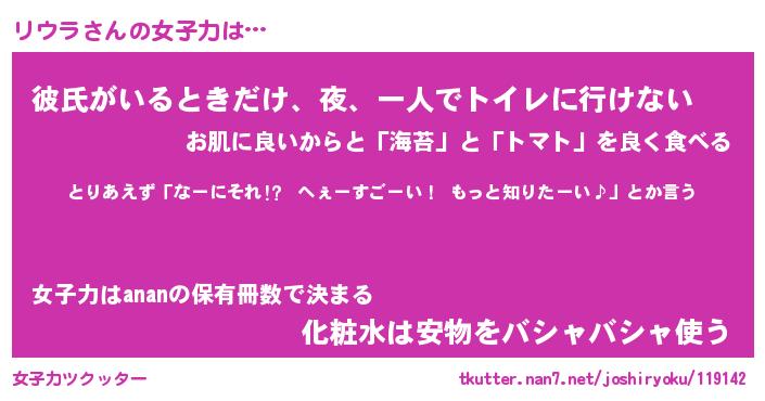 | 意味不明あだ名 | 『ペロリンリウラ』『リウラフォーエバー』 |