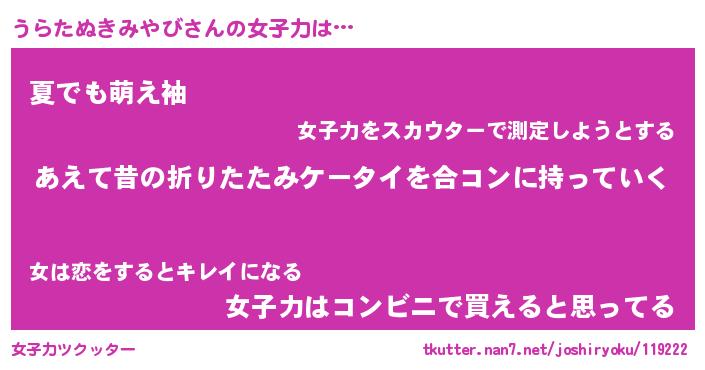 | ヘコむあだ名 | 『うらにー』『なまこ酢』『うらお』 |