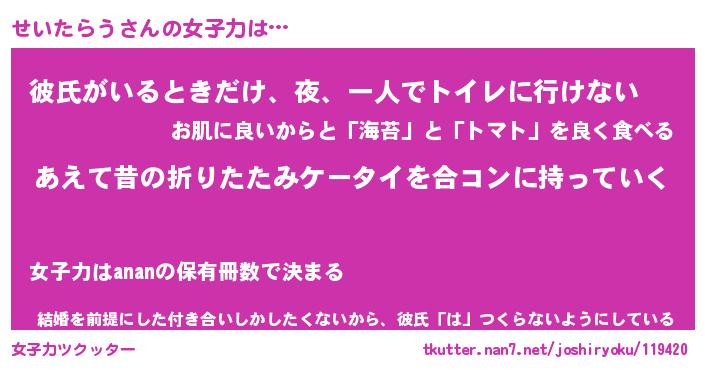| ヘコむあだ名 | 『せいにゅー』『豆乳』『せいっちょ』 |