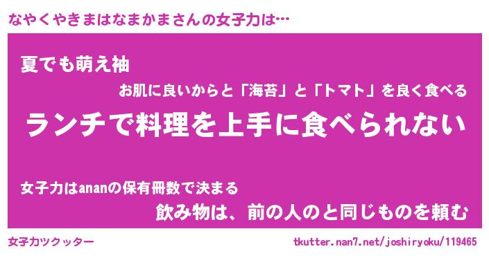 | ヘコむあだ名 | 『なやにゅー』『なまこ酢』『なやを』 |