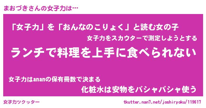 | ヘコむあだ名 | 『まおっふぃ~』『つくし』『まおを』 |